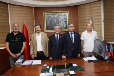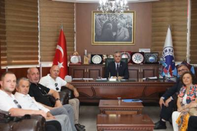 KESK Genel Başkanı Ahmet Karagöz, KESK Trabzon Dönem Sözcüsü Muhammet Üçüncü ve beraberindeki yönetim kurulu üyeleri, Belediye Başkanımız Mustafa Bıyık’ı makamında ziyaret etti.
