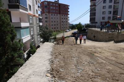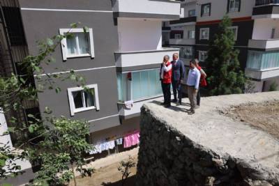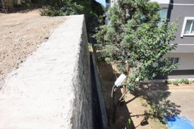 Sancak Mahallesi Dilaveroğlu Sokak’ta yapımı tamamlanan duvar çalışmasını inceledi.