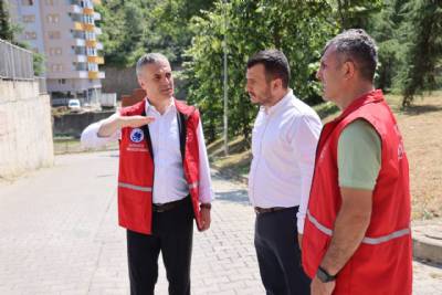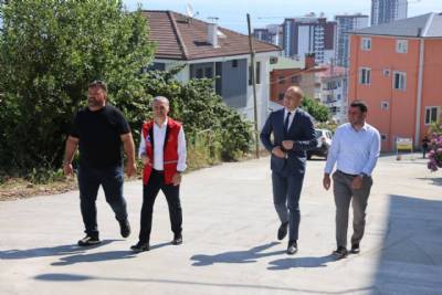 Kaşüstü Mahallesi Öğretmenevleri Caddesi’nde devam eden parke tamirat çalışmalarını yerinde inceledi.