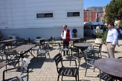 Kültür Merkezine ek olarak oluşturulan bekleme alanında incelemelerde bulundu.
