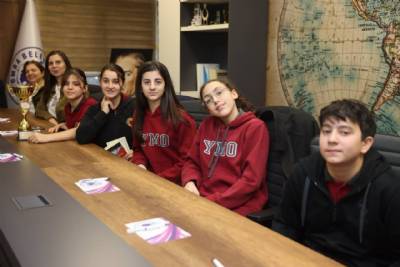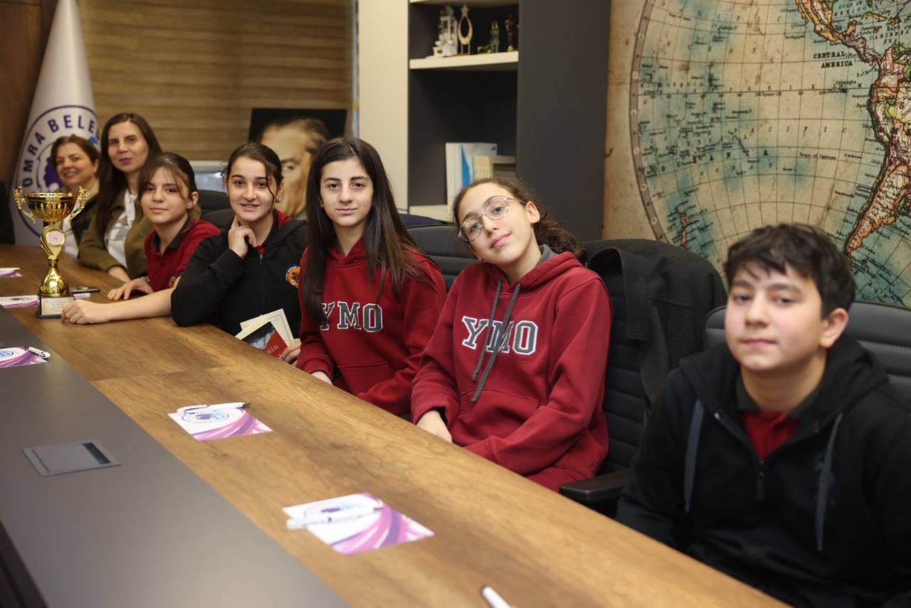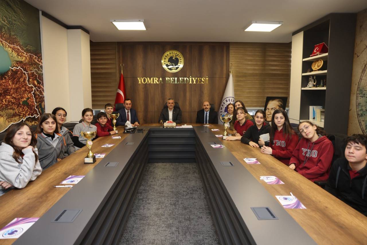 Yıldız Kızlar ve Erkekler Spor Tırmanışı Trabzon birincisi Yomra Merkez Ortaokulu ile Yıldız Kızlar Spor Tırmanışı Trabzon ikincisi Kaşüstü Cumhuriyet Ortaokulu öğrencileri, okul müdürleri ve beden eğitimi öğretmenleriyle birlikte Belediye Başkanımız Mustafa Bıyık’ı makamında ziyaret etti.