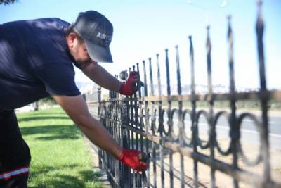 Hürriyet Parkı’nın karayoluna bakan tarafında yürütülen demir korkuluk çalışmalarını yerinde inceledi.
