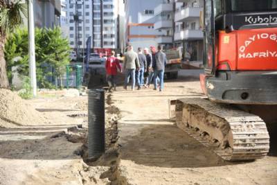 Kaşüstü Mahallesi Merkez Caddesi’ne bağlanan sokaklarda devam eden yağmursuyu hattı çalışmalarını yerinde inceledi.