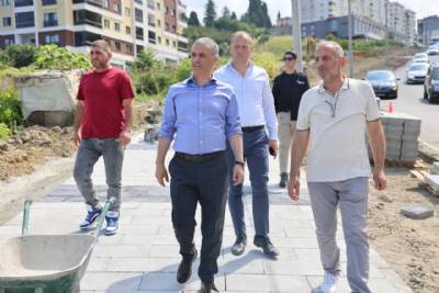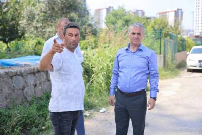 Kaşüstü Mahallesi Muratlı Caddesi’nde (Hastane Yolu) Trabzon Büyükşehir Belediyesi tarafından yapımına devam edilen kaldırım çalışmalarını yerinde inceledi.