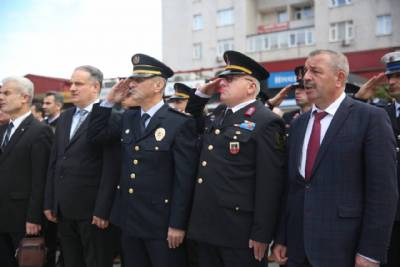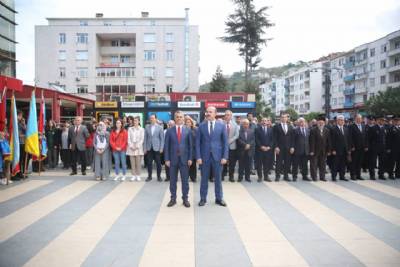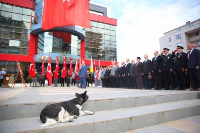 29 Ekim Cumhuriyet Bayramı kutlamaları kapsamında Belediye binamızın önünde tören düzenlendi. Yomra Kaymakamımız Muhammet Öztabak ve Belediye Başkanımız Mustafa Bıyık’ın Atatürk Anıtı'na çelenk sunduğu törende, daire amirleri, siyasi parti ve sivil toplum kuruluşu temsilcileri hazır bulundu. Tören, saygı duruşu ve İstiklal Marşı'nın okunmasıyla tamamlandı.