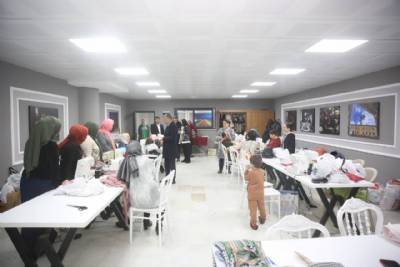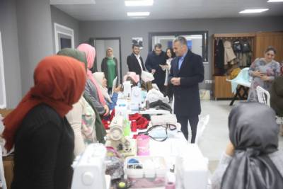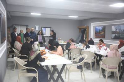 Kültür Merkezimiz bünyesinde oluşturduğumuz Halk Eğitim Salonlarında el sanatları; tekstil, nakış, boyama ve benzeri kursları gören ve aynı zamanda üretim yapan kadınları ziyaret etti.