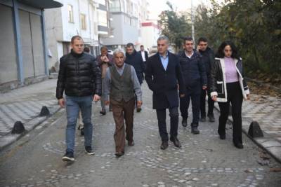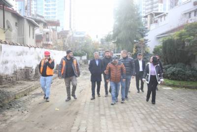 Sancak Mahallesi Şehit Osman Bayrak Caddesi’ni Adnan Kahveci Caddesi’ne bağlayacak olan ara yolda yapımına devam ettiğimiz merdiven ve imar yolları güzergahında incelemelerde bulundu.