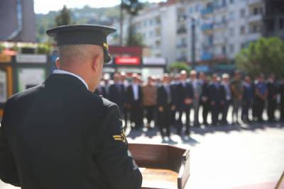 19 Eylül Gaziler Günü kutlamaları kapsamında Belediye binamızın önünde tören düzenlendi. Yomra Kaymakamımız Muhammet Öztabak ve Belediye Başkanımız Mustafa Bıyık’ın Atatürk Anıtı'na çelenk sunduğu törende, daire amirleri, siyasi parti ve sivil toplum kuruluşu temsilcileri hazır bulundu. Tören, saygı duruşu ve İstiklal Marşı'nın okunmasıyla tamamlandı.