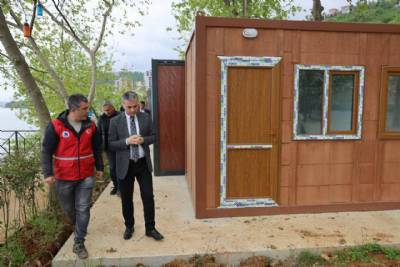 Namıkkemal Mahallesi Sahil Yürüyüş Yolu’ndaki belediye tesislerinde devam eden mescit, WC ve çevre düzenlemesini yerinde inceledi.