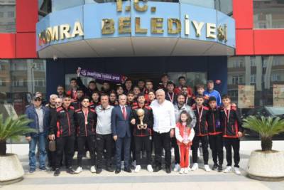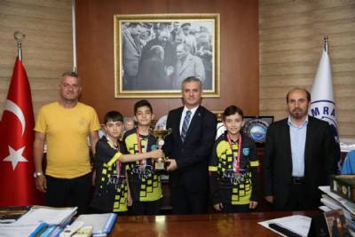 U-19 Bölgesel Gelişim Ligi final maçını 5-1 kazanarak Şampiyon olan Yomraspor’umuzun genç yetenekleri Belediye Başkanımız Mustafa Bıyık’ı makamında ziyaret etti. Başkanımız, Şampiyon takımın yönetim kurulunu, tekni...