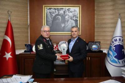 Yomra I·lc¸e Jandarma Komutanımız Hasan Zeki Uzunöz, Belediye Bas¸kanımız Mustafa Bıyık’ı makamında ziyaret ederek Jandarmanın 184'üncü kuruluş yıl dönümü anısına kendisine plaket takdim etti...