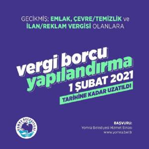 Gecikmiş; emlak, çevre/temizlik ve ilan/reklam vergisi borçları yapılandırması 1 Şubat 2021 tarihine kadar uzatılmıştır. ...