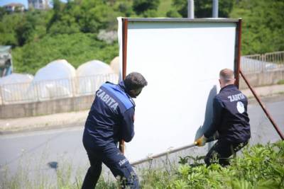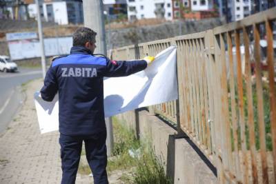 İLÇEMİZ GENELİNDE İZİNSİZ ASILAN REKLAM VE AFİŞLER TOPLANMIŞTIR